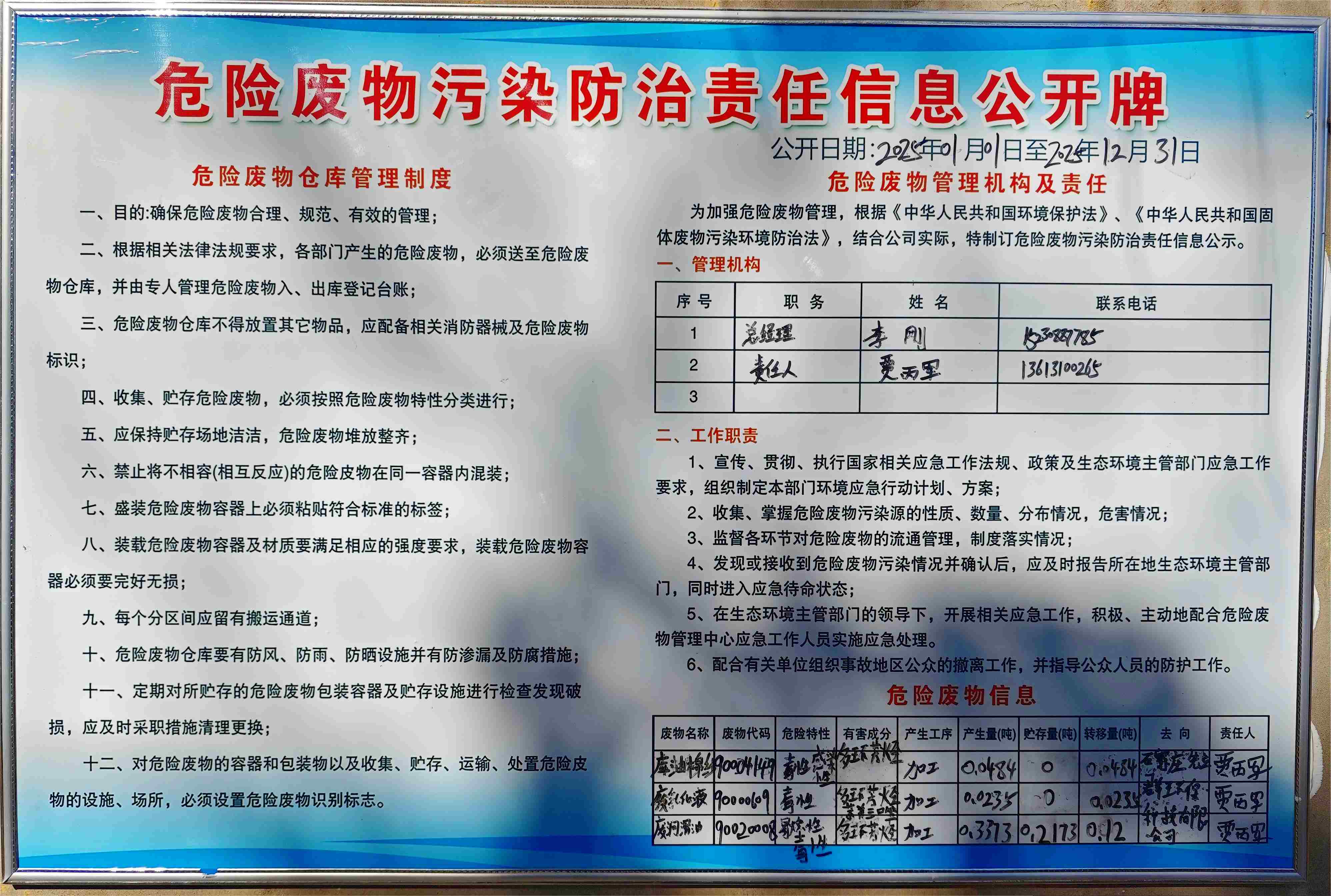 危险废物污染防治责任信息公开牌